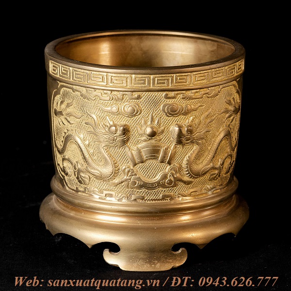 BÁT HƯƠNG ĐỒNG CHẠM KHẮC RỒNG PHƯỢNG VÀNG MỘC