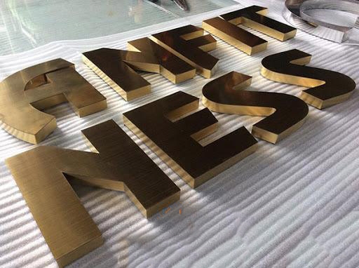 • Chất lượng sản phẩm: Thiết kế độc đáo có độ bền rất cao, ít bị cong vênh biến dạng bởi thay đổi nhiệt độ môi trường nên đồng thường được sử dụng cho các bộ chữ nổi có kích thước bất kỳ, kể cả trong nhà lẫn ngoài trời. Sau khi thi công xong phần chữ nhà sản xuất thường mài nhẵn bằng giấy ráp trước, sau đó phủ lên lớp mặt bằng lớp 2k tạo độ bóng. Loại chữ đồng này thường sử dụng làm slogan, logo trong backdrop văn phòng.