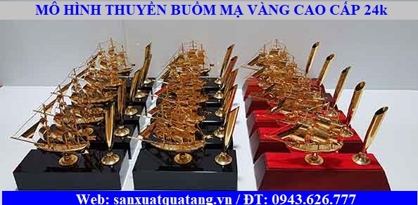 Thuyền mạ vàng được gắn lên đế pha lê đen sang trọng. Sản phẩm mang ý nghĩa phong thủy, bày thuyền buồm lên bàn làm việc, sẽ mang lại phong thủy may mắn cho gia chủ.
