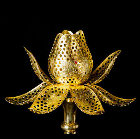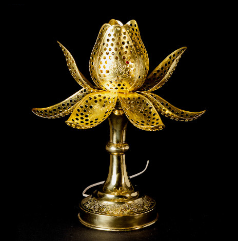 Đèn thờ hoa sen nở bằng đồng được đúc gò thủ công tinh xảo với ý nghĩa tâm linh và phong thủy.