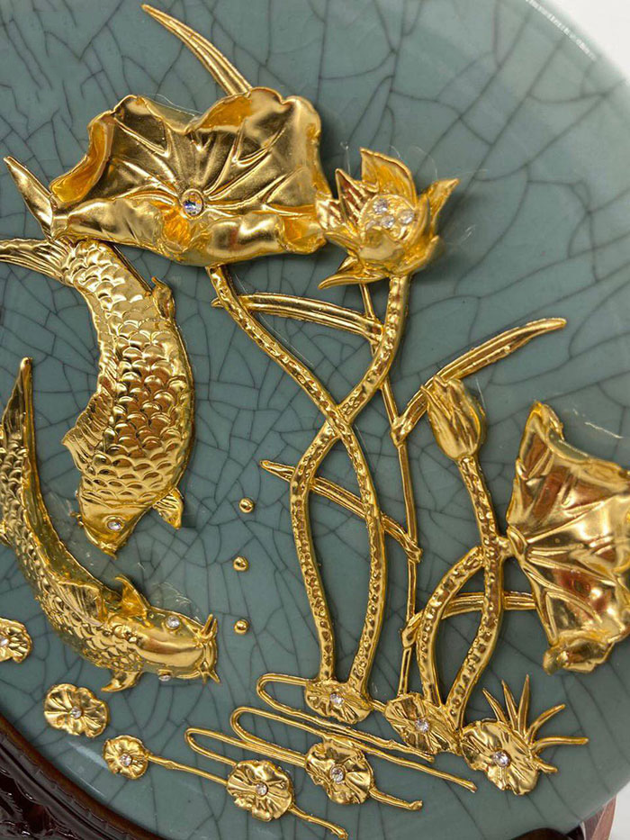 • Tên sản phẩm: Đĩa cá chép hoa sen dát vàng 24k