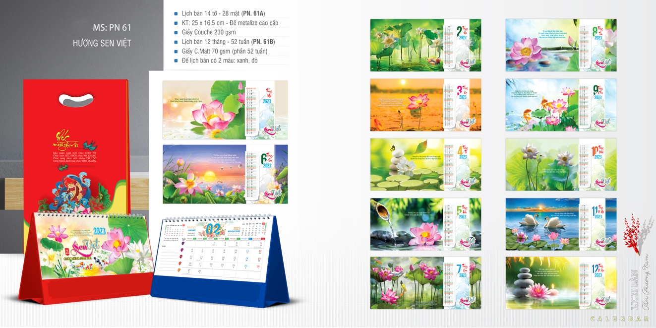 LỊCH ĐỂ BÀN 3HƯƠNG SEN VIỆT