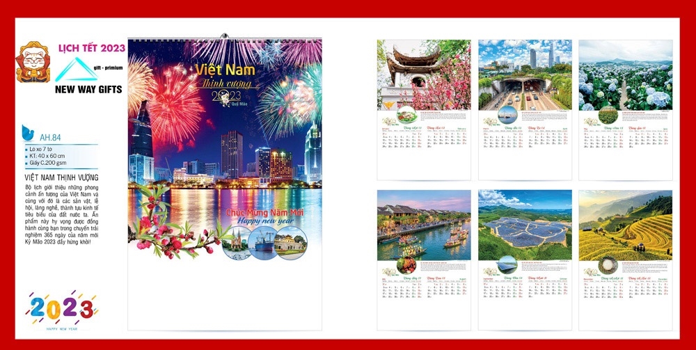 • Quy cách sản phẩm: Tùy thuộc vào nhà xuất bản, lịch treo tường có số lượng tờ khác nhau, nhưng thông thường mỗi tờ có lịch 2 tháng trong năm, nghĩa là một cuốn lịch treo tường thường có 6 tờ. Một số nhà sản xuất lịch tăng thêm tờ bìa bên ngoài, vì vậy lịch có thể có đến 7 tờ. Trong mỗi tờ lịch, ngày tháng thường được in bên dưới, bên trên là các hình ảnh. Người ta thường in các ảnh mỗi cuốn lịch theo chủ đề: phong cảnh, thiên nhiên, tranh vẽ, người đẹp, hoa, công trình xây dựng hoành tráng vv…