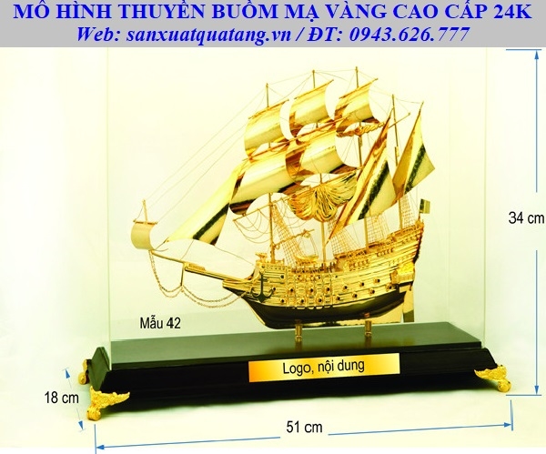 • Chất liệu: Mô hình thuyền mạ vàng 24k, pha lê nhập khẩu, mác in kim loại, hộp giấy mỹ thuật cao cấp