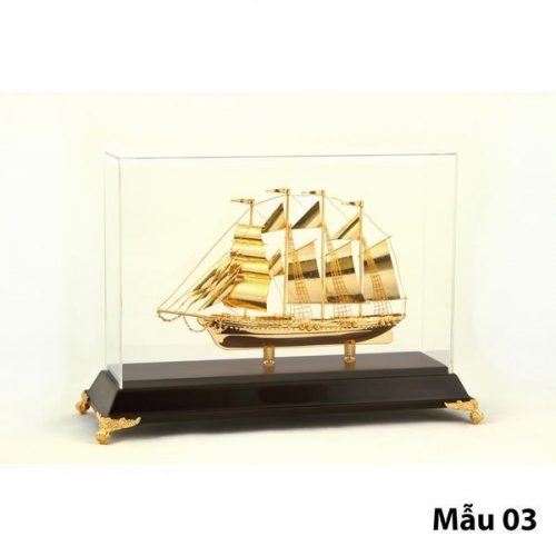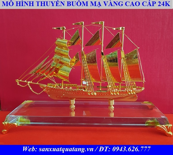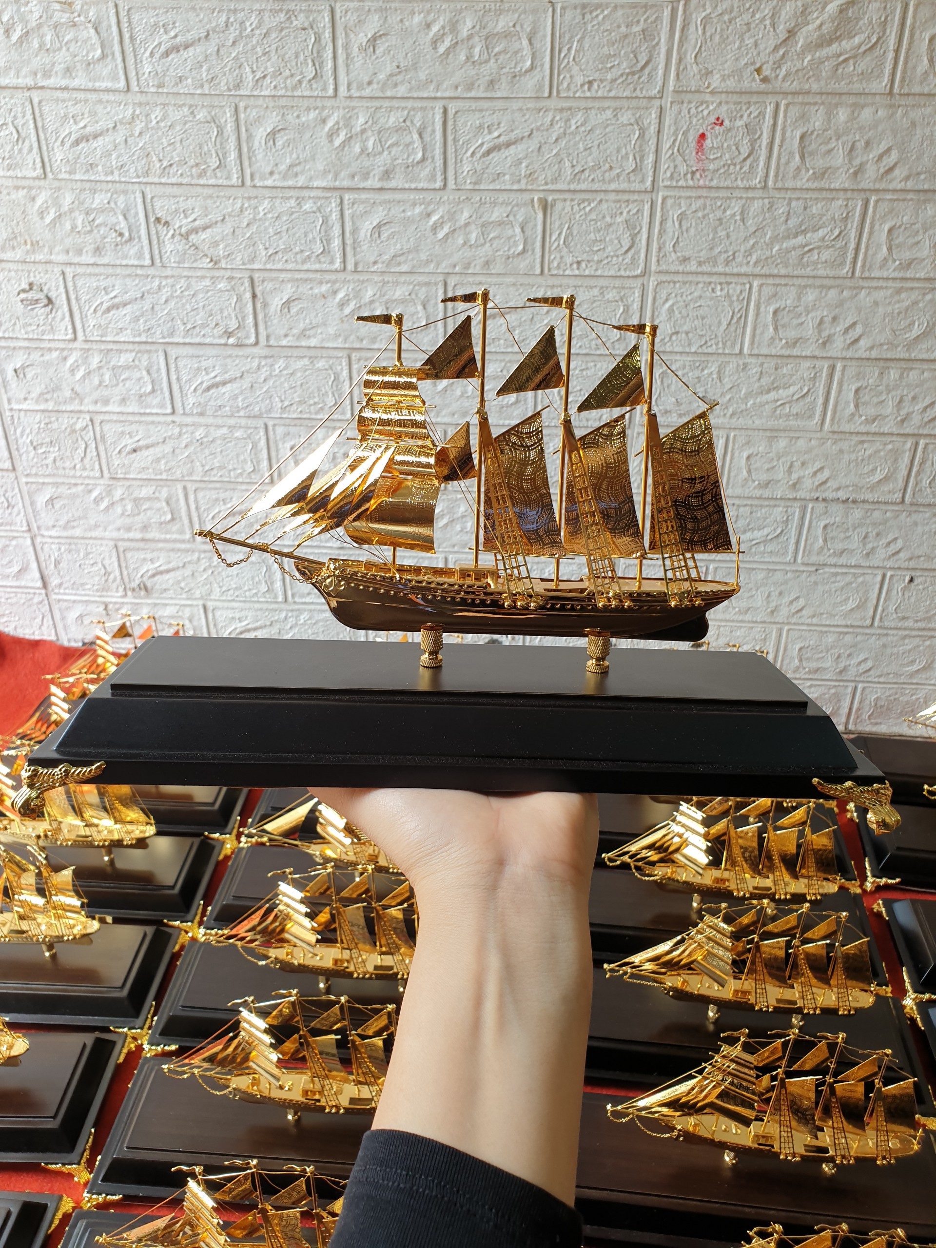 Mô hình thuyền buồm phong thủy mạ vàng 24K làm quà tặng Sếp, bạn bè hay người thân trọng những dịp lễ tết với ý nghĩa muốn người nhận luôn luôn gặp nhiều may mắn thuận lợi, nhiều tài lộc trên con đường kinh doanh và sự nghiệp.