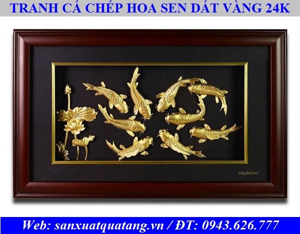 • Chất liệu: Khung gỗ, cá chép, bông sen 3D dát vàng 24k