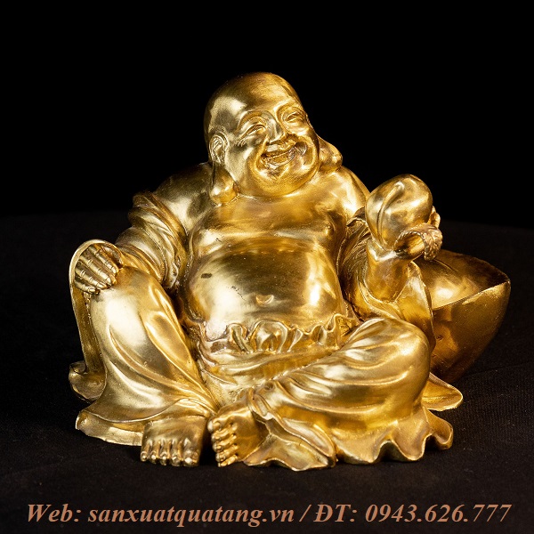 TƯỢNG PHẬT DI LẶC NGỒI CẠNH THỎI VÀNG TAY CẦM QUẢ ĐÀO